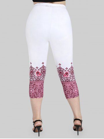 Plus Size High Waist Tribal Floral Print Capri Leggings - White - 3x | Us 22-24