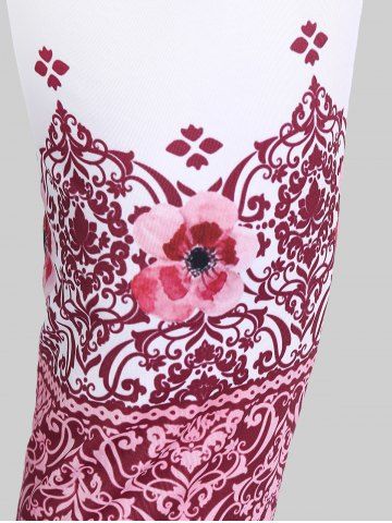 Graphic Leggings > Plus Size High Waist Tribal Floral Print Capri Leggings