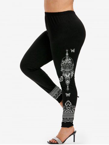 Plus Size High Waist Tribal Print Skinny Leggings - Black - 1x | Us 14-16
