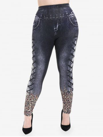 S*****e5Plus Size Leopard 3D Lace Up Denim Print Skinny JeggingsColor: BLACK Size: 4X | US 26-28cute and comfortable. love the print and fit