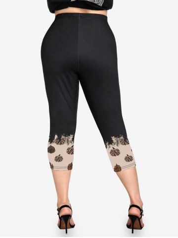 Graphic Leggings > Plus Size Leopard Pumpkin Print Capri Leggings