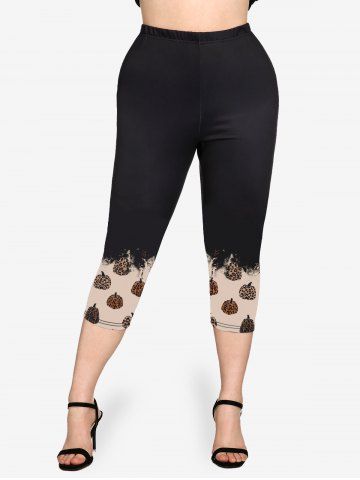 Graphic Leggings > Plus Size Leopard Pumpkin Print Capri Leggings