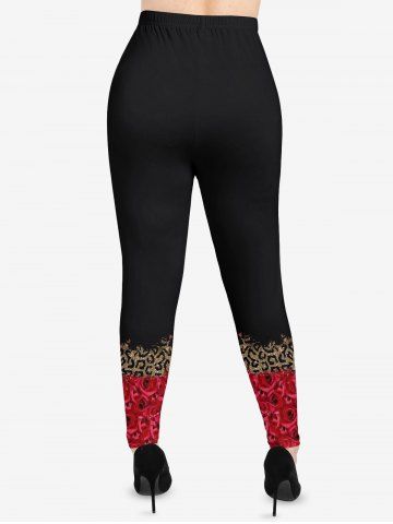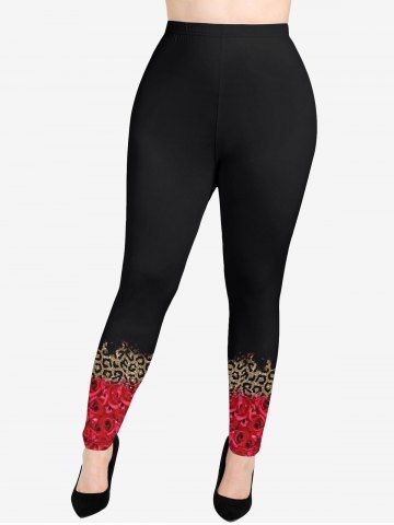 Plus Size Leopard Rose Flower Glitter 3D Print Leggings - Red - 1x