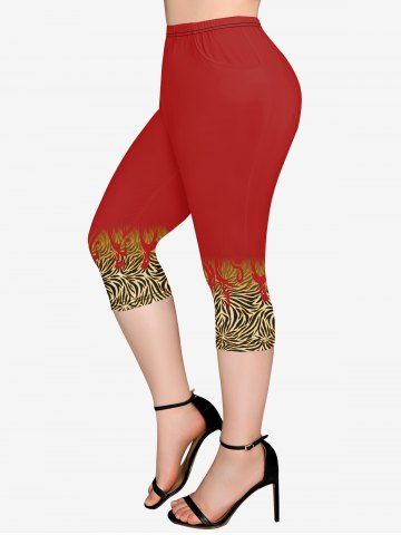 Plus Size Leopard Vintage Print Pocket Capri Leggings - Red - 4x