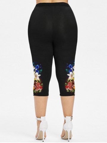 Plus Size Lily Rose Flower Music Symbol Galaxy Print Capri Leggings - Black - 1x