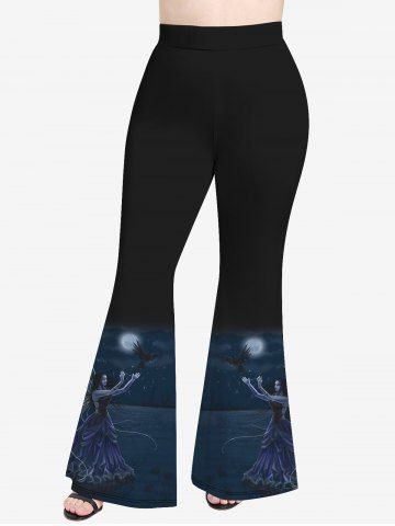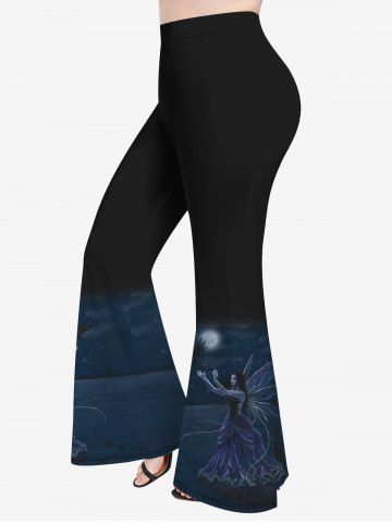 Renaissance Plus Size Moon Wings Angel Bird Print Flare Pants - Black - 5x
