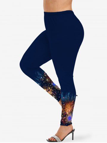 Plus Size New Year Party Galaxy Fireworks Glitter Sparkling Sequin 3D Print Leggings - Deep Blue - 4x