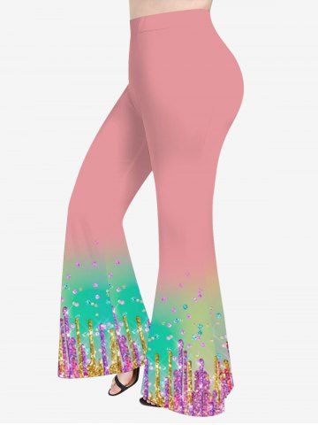 Plus Size Ombre Colorblock Paint Drop Blobs Sparkling Sequin Glitter 3D Print Flare Pants - Light Pink - M