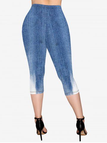 Plus Size Ombre Denim Print Pockets Capri Leggings - Blue - L