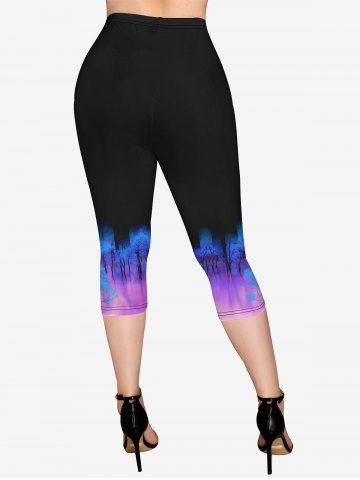 Graphic Leggings > Plus Size Ombre Trees Print Pockets Capri Leggings