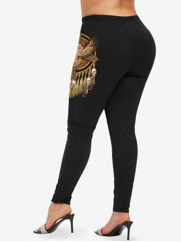 Graphic Leggings > Plus Size Owl Feather Cross Ethnic 3D Print Leggings