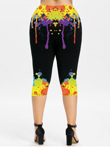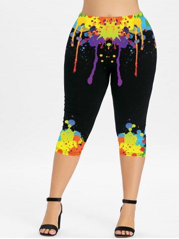 Graphic Leggings > Plus Size Paint Splatter Printed Skinny Capri Leggings