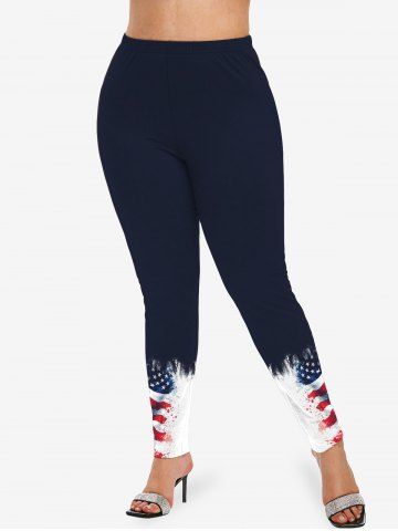 Plus Size Patriotic American Flag Painting Splatter Print Leggings - Black - 2x