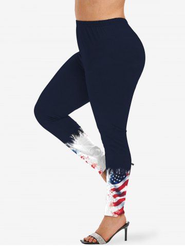 Plus Size Patriotic American Flag Painting Splatter Print Leggings - Black - 3x