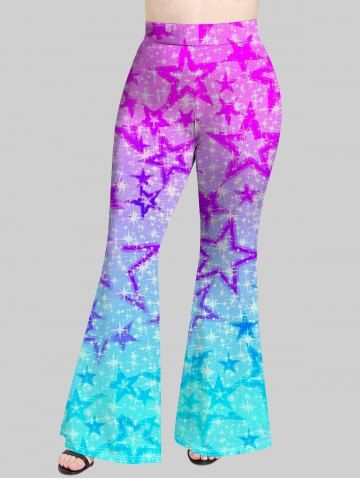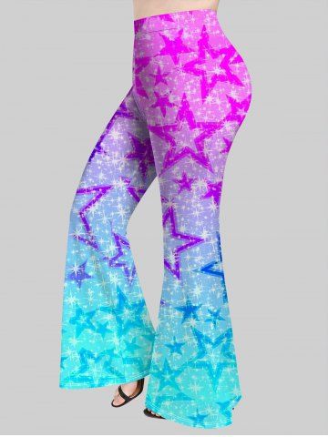 Plus Size Pentagram Glitter Sparkling Print Ombre Flare Pants - Multi - Xs