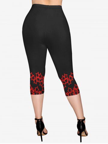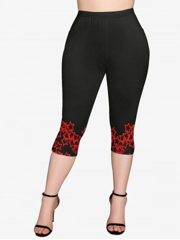 Plus Size Pentagram Star Print Pocket Capri Leggings - Black - S