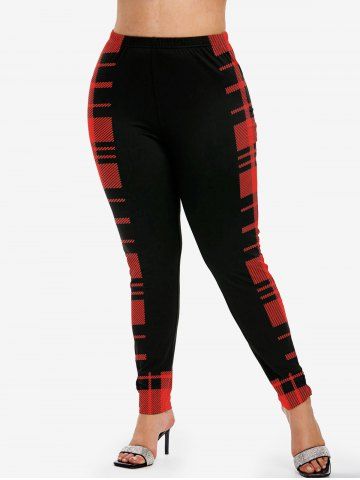Graphic Leggings > Plus Size Plaid Colorblock Skinny Leggings