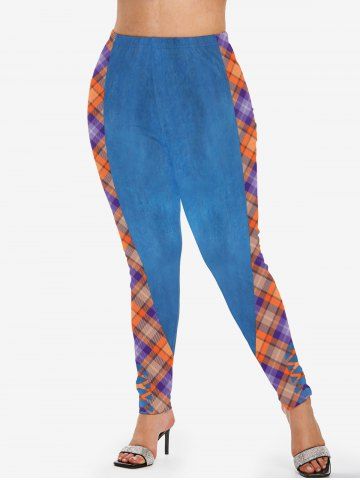 Plus Size Plaid Crisscross Pattern Skinny Leggings - Multi - 3x | Us 22-24