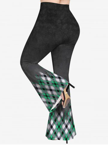 Plus Size Plaid Print Flare Pants - Green - 3x | Us 22-24