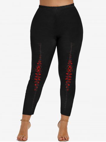 Plus Size Plaid Printed High Waisted Skinny Leggings - Black - M | Us 10