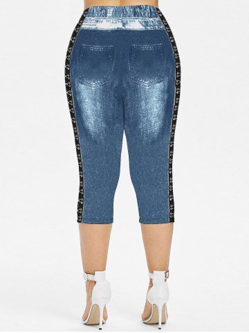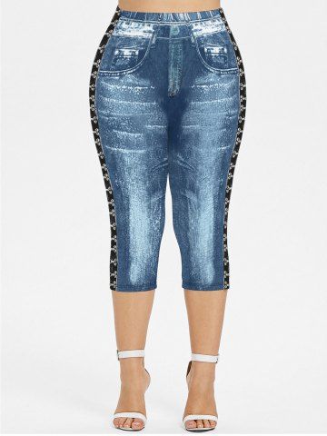 Graphic Leggings > Plus Size Pockets Grommets Buckles Distressed Denim 3D Print Capri Leggings