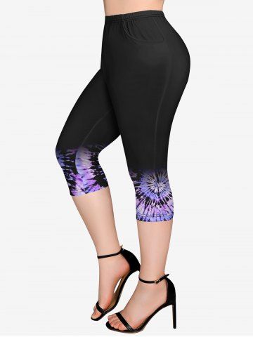 Graphic Leggings > Plus Size Pockets Tie Dye Capri Leggings