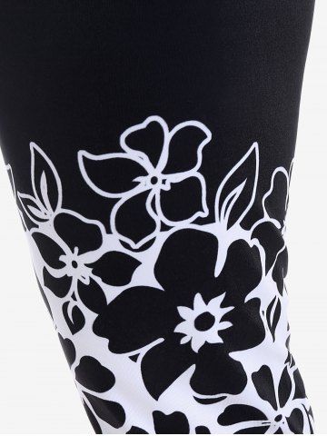 Plus Size Polka Dot Floral Print Capri Leggings - Black - 5x | Us 30-32