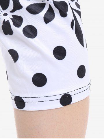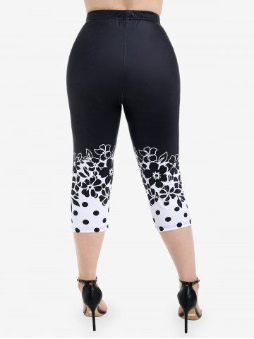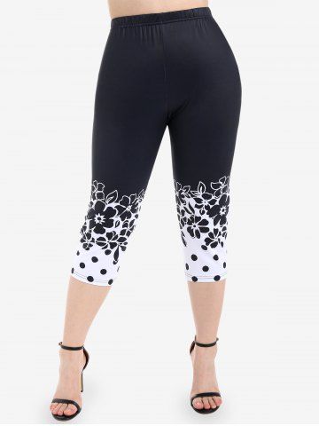 Graphic Leggings > Plus Size Polka Dot Floral Print Capri Leggings