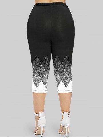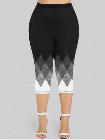 Plus Size Rhombus Printed Colorblock Capri Leggings - Black - S | Us 8
