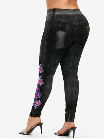 Graphic Leggings > Plus Size Rose 3D Denim Print Skinny Jeggings