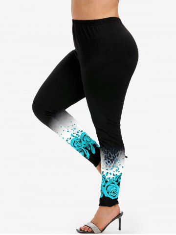 Graphic Leggings > Plus Size Rose Animal Leopard Printed Ombre Skinny Leggings