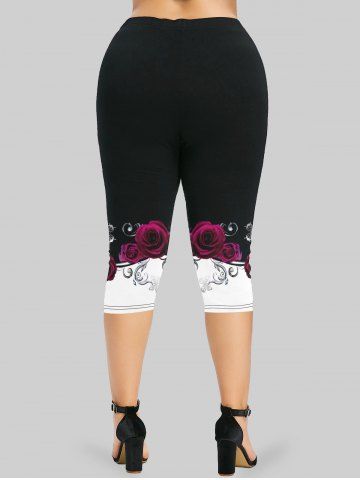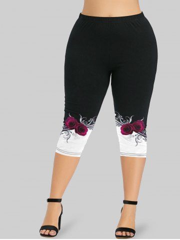 Graphic Leggings > Plus Size Rose Butterfly Printed Skinny Capri Leggings