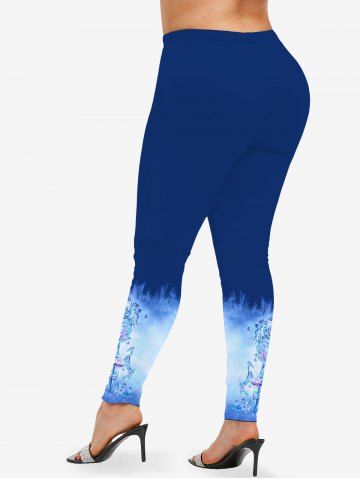 Plus Size Rose Flower Tie Dye Colorblock Print Leggings - Blue - Xs