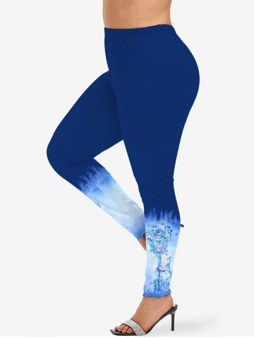 Plus Size Rose Flower Tie Dye Colorblock Print Leggings - Blue - 4x
