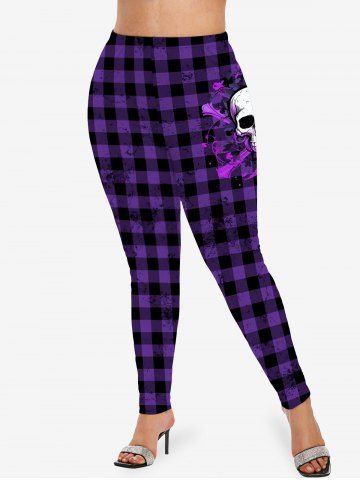 Plus Size Skull Skeleton Cross Plaid Checkered Attrited 3D Print Leggings - Concord - S