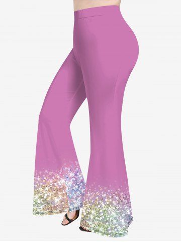Plus Size Sparkling Sequin 3D Print Flare Pants - Light Pink - 1x
