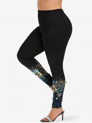 Plus Size Sparkling Sequin Glitter 3D Print Leggings - Black - 5x