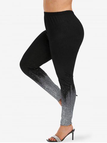 Plus Size Sparkling Sequin Glitter Colorblock 3D Print Leggings - Black - 1x