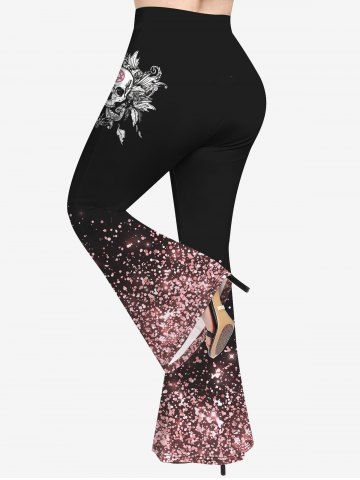 Graphic Leggings > Plus Size Sparkling Sequin Skull Flower Butterfly Print Flare Pants