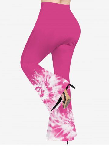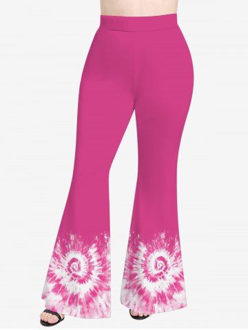 Plus Size Spiral Tie Dye Print Flare Pants - Light Pink - 5x