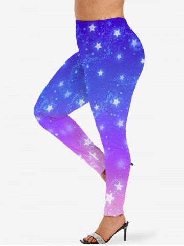 Graphic Leggings > Plus Size Stars Galaxy Print Ombre Skinny Leggings