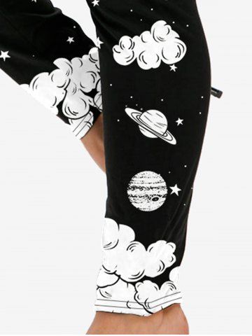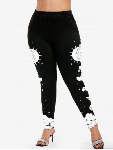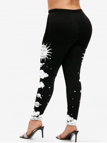 Plus Size Sun Moon Galaxy Printed Skinny Leggings - Black - 2x | Us 18-20