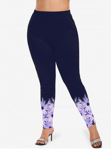 Plus Size Sunflowers Print Leggings - Purple - 5x