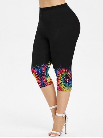 Plus Size Tie Dye Galaxy Star Glitter 3D Print Capri Leggings - Black - 3x