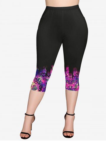 Graphic Leggings > Plus Size Tie Dye Glitter Letters Print Pockets Capri Leggings