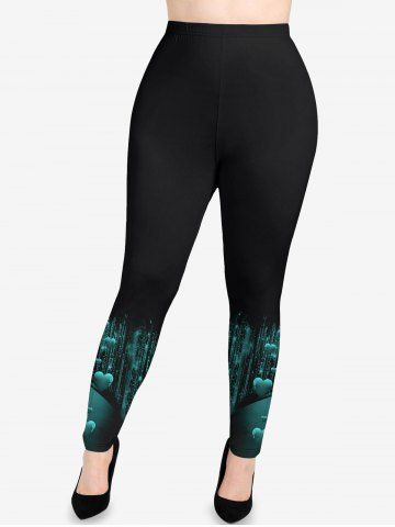 Plus Size Valentine's Day Heart Colorblock Glitter Tassel 3D Print Leggings - Deep Green - 4x