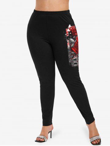 Plus Size Valentine's Day Rose Flower Birds Ripped Glass 3D Print Leggings - Black - L