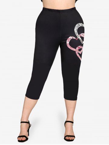 Plus Size Valentines Heart Printed Capri Leggings - Black - 1x | Us 14-16