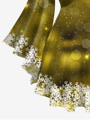 Plus Size Christmas Gingerbread Snowflake Glitter 3D Print Lattice Crisscross Flare Sleeve Top - Deep Yellow - 4x