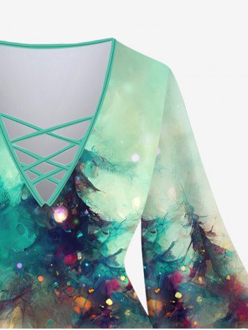 Plus Size Christmas Tree Light Sparkling Sequin Glitter 3D Print Lattice Crisscross Flare Sleeve T-shirt - Multi-a - S